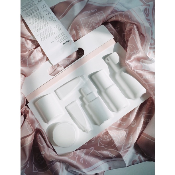 Set dưỡng da cơ bản siêu xinh của Glossier Set gồm: - Sữa rửa mặt milky jelly 60ml - Dầu dưỡng da căng bóng tự nhiên Futuredew 15ml (1/2 chai fullsz) - Serum dưỡng da Super bounce 15ml ( 1/2 chai fullsz) - Kem dưỡng ẩm ngày đêm Rich luxury priming moisturizer 15ml (1/3 hũ fullsz) - Balmdotcom original mini (1/2 tuýp fullsz) - Balmdotcom Rose mini (1/2 tuýp fullsz) - Cài tóc logo G signature Glossier