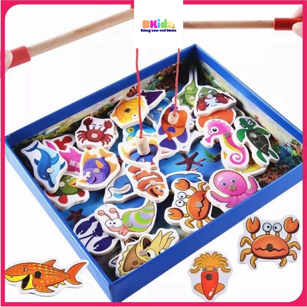 Đồ chơi gỗ - Câu cá thông minh 2 cần câu 32 chi tiết hộp giấy Bkid21 -----CHI TIẾT SẢN PHẨM----- + Gồm 1 bể, 2 cần câu và 30 sinh vật biển bằng gỗ + Trên mỗi sinh vật biển và dây câu có gắn nam châm. + Chất liệu gỗ + Thích hợp với bé từ 3 tuổi trở lên -----TÁC DỤNG----- - Bộ đồ chơi giúp cho bé nhận biết được các loại cá khác nhau và giúp bé thể hiện sự nhanh nhẹn và khéo léo. - Tập tính kiên nhẫn cho bé khi câu cá và rèn luyện phản xạ linh hoạt, đồng thời rèn luyện đôi tay cho bé thêm phần khỏe mạnh. - Được làm từ chất liệu gỗ cao cấp, an toàn tuyệt đối cho bé yêu nhà bạn. - Màu sắc phong phú, đa dạng, tăng khả năng nhận biết màu sắc, hình ảnh ở bé.