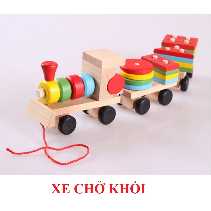 Mẹ & Bé > Đồ chơi > Đồ chơi giáo dục > Đồ chơi hình khối || Đồ chơi gỗ - đoàn tàu xe chở khối thả hình trụ 3 toa size nhỏ