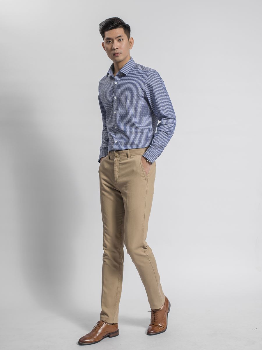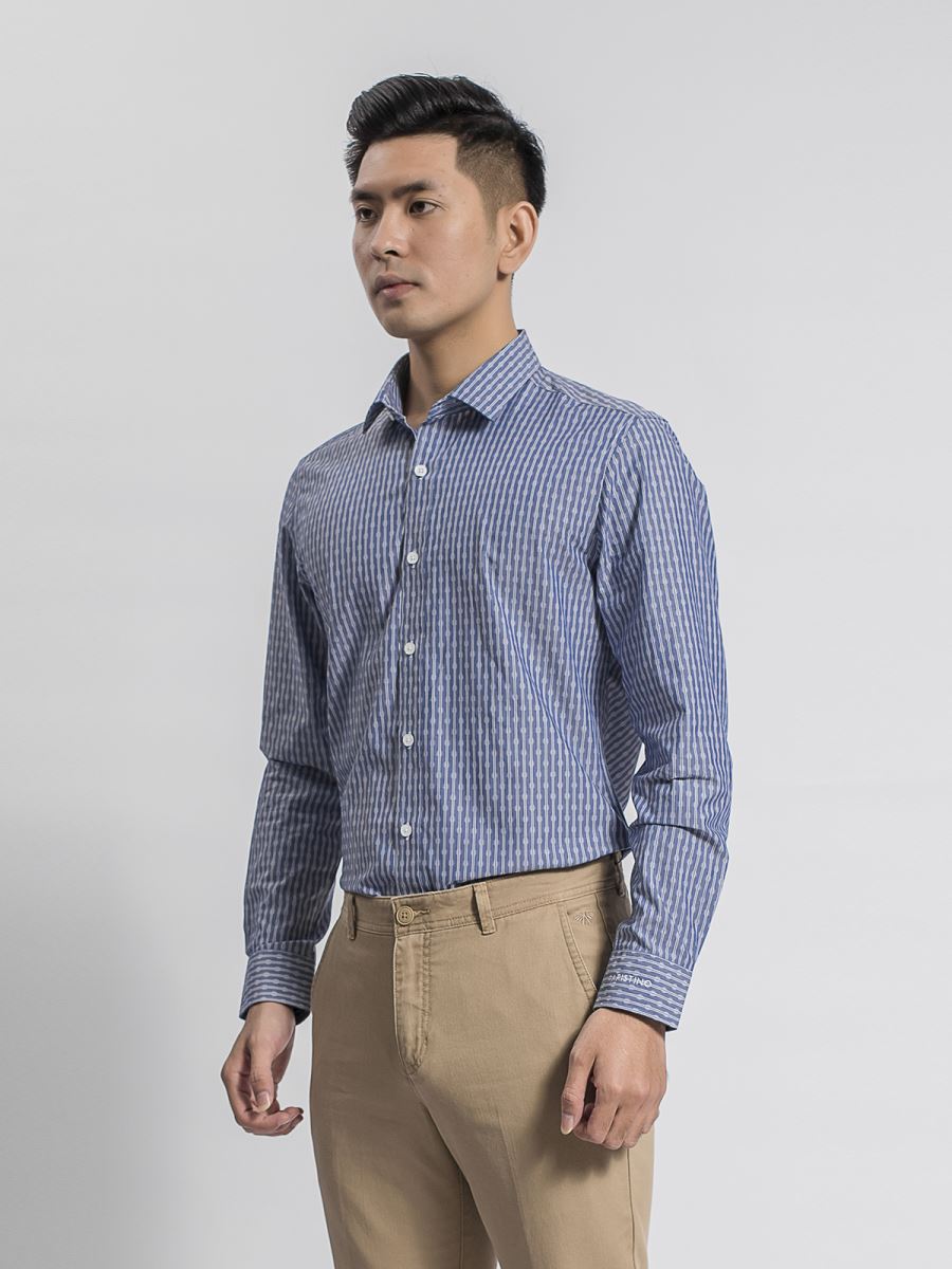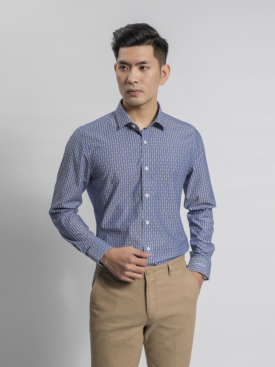 - Áo sơ mi dài tay phom dáng Slim Fit ôm vừa vặn, tôn dáng người mặc.