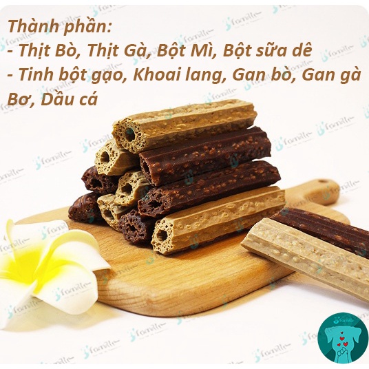 [GÓI 1 CÁI x 28Gr]Bánh Xốp Bò Gà Làm Sạch Răng Miệng Cho Chó, Bổ Sung Canxi, Loại Bỏ Mảng Bám, Chống Cắn Phá. JF158 -------- HÀNG NHẬP TẠI NHÀ MÁY, GIÁ LUÔN TỐT NHẤT, ĐẠT VỆ SINH AN TOÀN VẬT NUÔI -------- --------++++++-------- * Đặc điểm: - Xương gặm, xương mài răng JFamille được nghiên cứu và sản xuất dựa trên nhu cầu bổ sung dinh dưỡng, năng lượng, cũng như sở thích của các bé. - Xương gặm dinh dưỡng cho thú cưng giúp loại bỏ mảng bám, cao răng và mùi hôi khó chịu. - Bản năng của Chó là gặm, nhai.. những đồ vật cứng, bởi vậy ở tuổi trưởng thành, chúng sẽ tìm đến đồ đạc trong nhà như dép, túi, chân bàn, ghế để thỏa mãn cơn ngứa răng lợi. - Cho thú cưng Xương gặm đúng nhu cầu để chúng vừa có thể mài răng, vừa có thể ăn để cung cấp thêm canxi, dinh dưỡng. --------++++++-------- * Nguyên liệu: - Bò, Gà, Bột lúa mì, Sữa Dê... --------++++++-------- * HDSD: - Sản phẩm phù hợp cho mọi lứa tuổi thú cưng. - Cho thú cưng của bạn Xương gặm, xương mài răng để giảm làm sạch răng, chống hôi miệng, bổ sung Canxi và quan trọng là giúp chúng KHÔNG tìm đến đồ đạc trong gia đình để cắn phá khi ngứa răng. --------++++++-------- * Quy cách đóng gói: - 1Cái x 1 Gói 28gr --------++++++-------- ** Bảo quản nơi khô ráo, thoáng mát. Tránh ánh nắng trực tiếp. ** Mọi sản phẩm của JFamille đều tuân thủ các quy định về vệ sinh thức ăn cho vật nuôi. ** KHÔNG sử dụng chất phụ gia, phẩm màu, chất bảo quản, bởi vậy hãy đừng lo lắng khi sản phẩm nhận được có màu sẫm hơn so với hình ảnh chụp.
