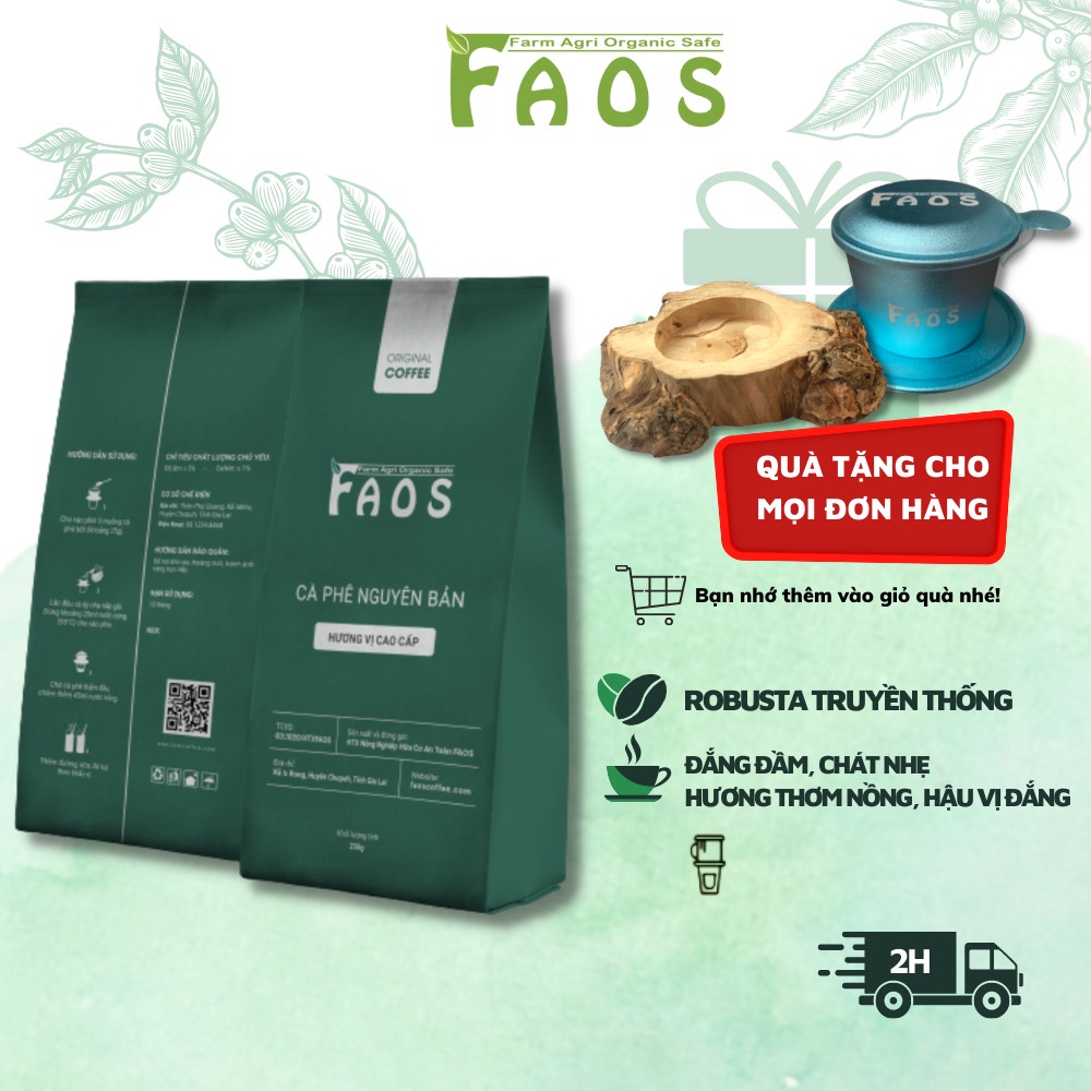 Thực phẩm và đồ uống > Đồ uống > Cà phê || [GÓI 250Gram] Cà phê ROBUSTA truyền thống-Natural rang mộc 100% pha phin vị đắng đậm thơm nồng truyền thống |Faos Coffee