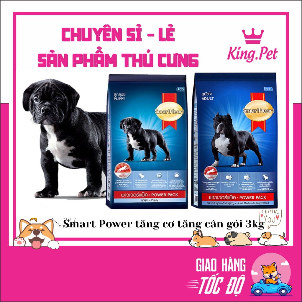 Chăm Sóc Thú Cưng > Thức ăn cho thú cưng > Thức ăn cho chó || Gói 3 kg (2 loại)- thức ăn chó Smartheart Power pack tăng cơ chắc xương