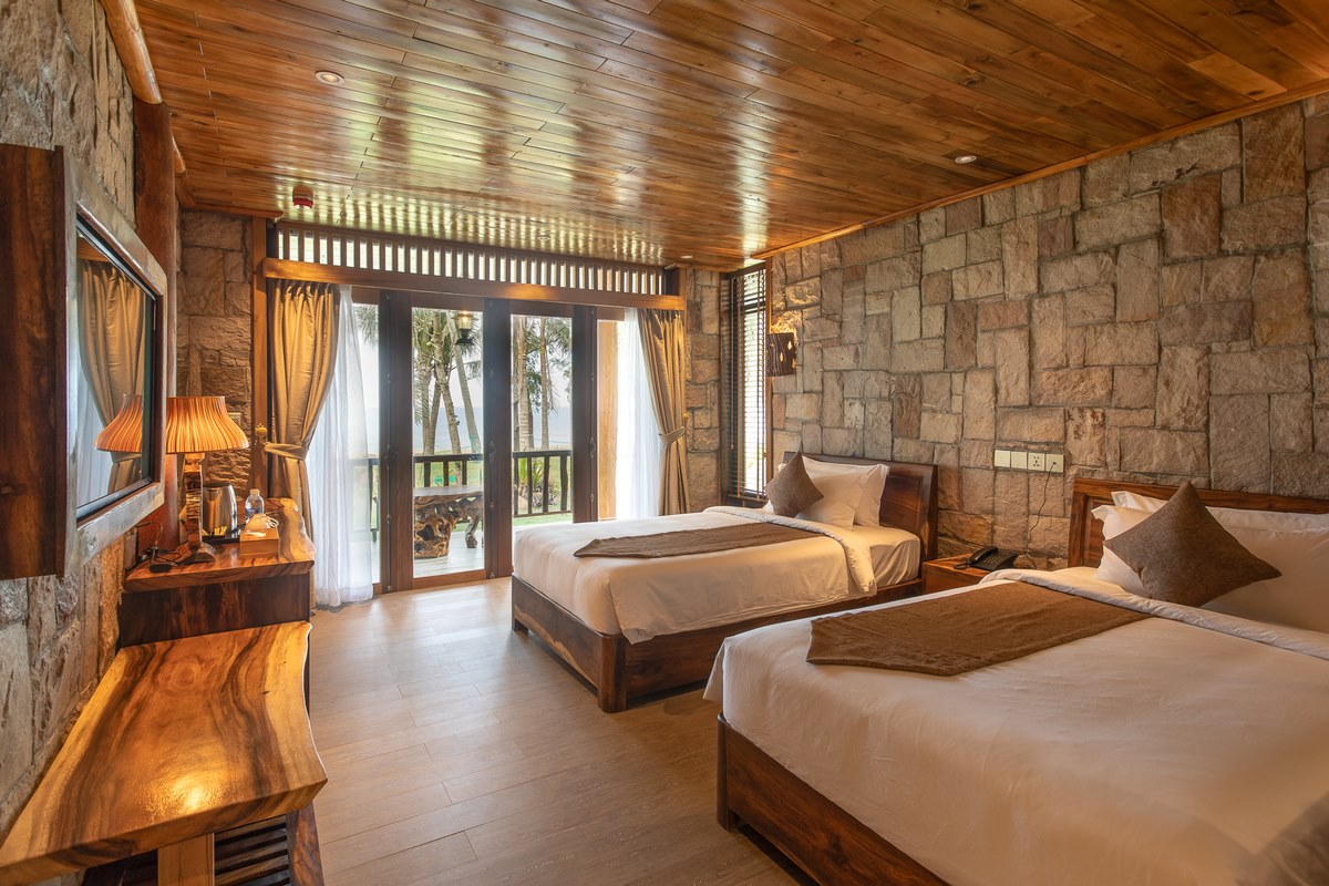 Nếu đi cả gia đình, quý khách hãy đặt hẳn villa 02 phòng ngủ sẽ rất tiện, villa có 1 phòng ngủ giường lớn, 1 phòng khách rộng rãi, 1 phòng với 2 giường nhỏ và mỗi phòng đều có bồn tắm ngoài trời tuyệt vời. Vlogger Lý Thành Cơ đã nhận xét "Phải nói mình đã ngâm và sưởi nắng ở khu vực ngoài trời này nhiều lần trong chỉ 2 ngày ở đây. Cảm giác được hoà mình vào thiên nhiên thật tuyệt vời".