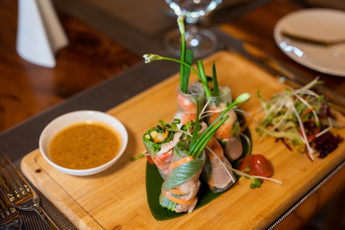 Ẩm thực tại Ocean Bay Resort & Spa 5* Phú Quốc đa dạng và làm mình bất ngờ vì cách bày trí rất đẹp và thịt bò lại đặc biệt ngon. Nếu tới đây hãy thử món tenderloin áp chảo, cá ngừ kiểu Địa Trung Hải với cơm Hy Lạp nhé.