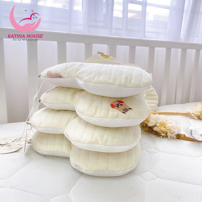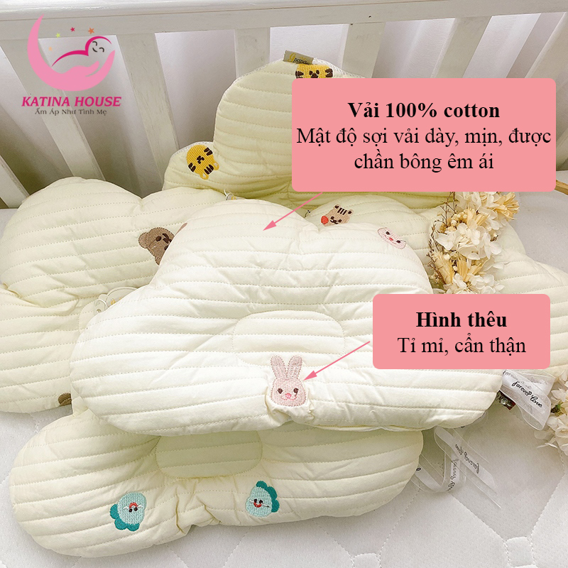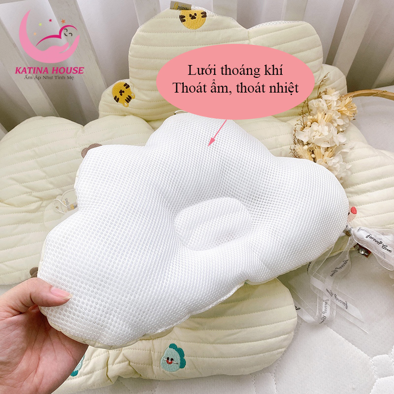 Gối mây chần bông cho bé sơ sinh 0-6th, vải cotton phối lưới thoáng mát