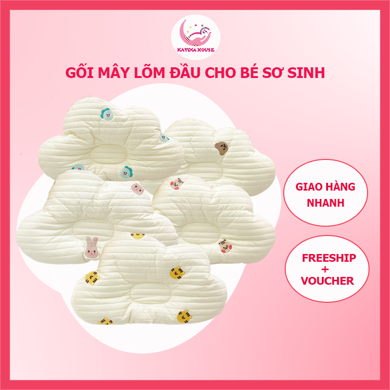 Gối chần bông cho bé sơ sinh mỏng, mềm, kiểu dáng hình đám mây dễ thương, phù hợp cho bé từ 0-6 tháng tuổi. Gối thấp bảo vệ đốt sống cổ cho bé.
