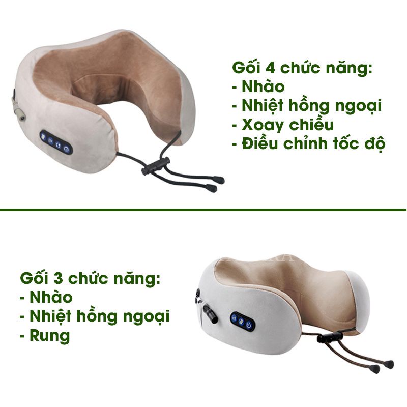 Gối massage cổ chữ U đa năng cao cấp, Máy mát xa cổ vai gáy hiệu quả kiêm gối ngủ tiện lợi 4 trong 1 [Hàng loại 1]