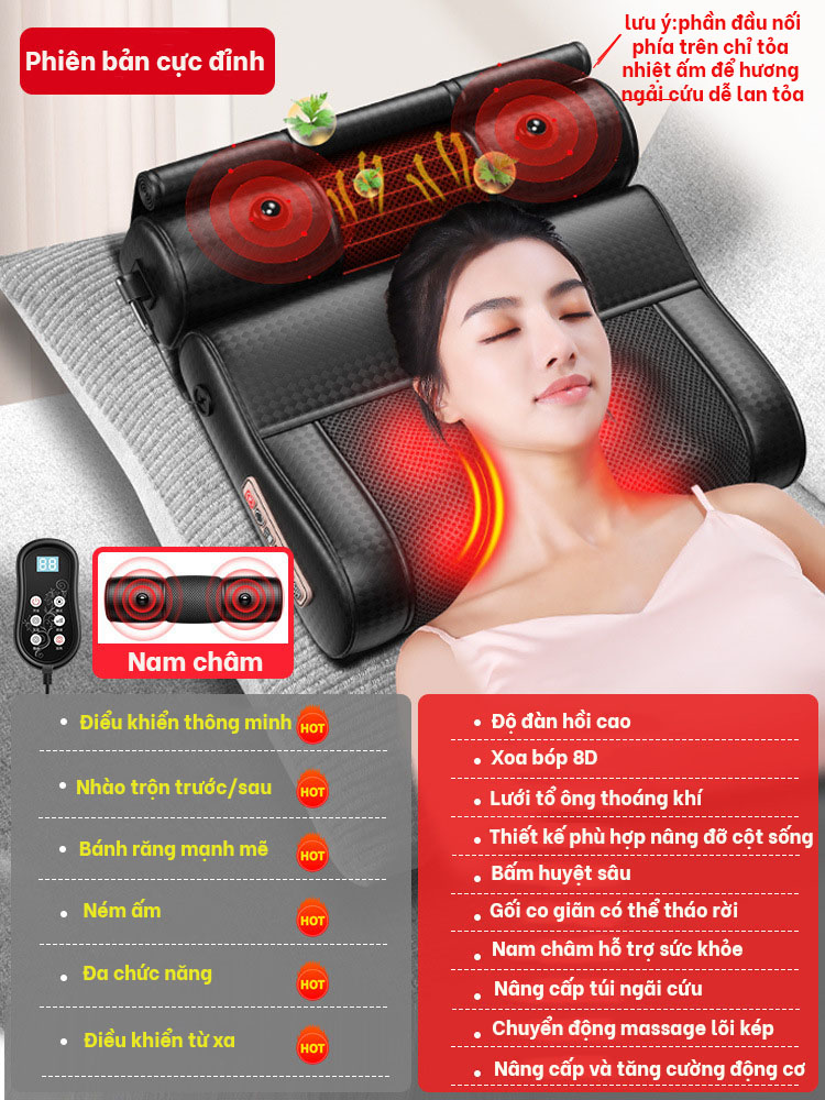 ***Lưu ý: Phần đầu nối phía trên của gối chỉ tỏa nhiệt ấm để cho hương ngải cứu dễ lan tỏa khi sử dụng