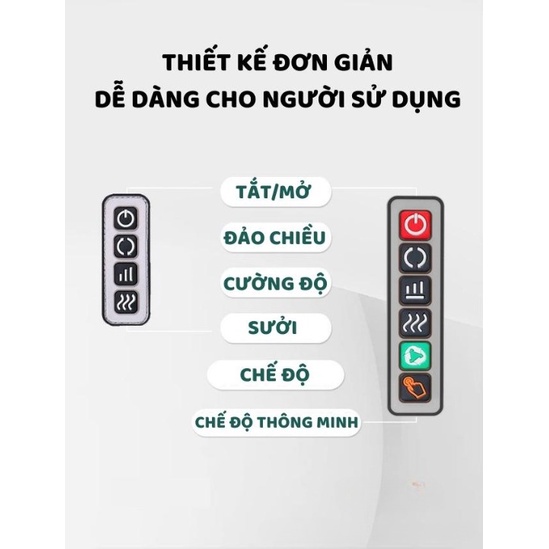- Ba mức độ Massage, rung xoa bóp giúp phù hợp hơn với hầu hết mọi lứa tuổi.
