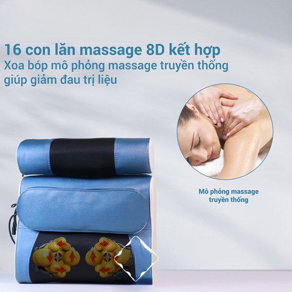 ✤ 16 đầu Massage 8D cao cấp kết hợp các kỹ thuật Massage phong phú, đa dạng: Giải phóng áp lực trên vai và cổ một cách hiệu quả. Các đầu Massage mô phỏng thao tác xoa bóp chuyên nghiệp, nhào nặn uyển chuyển giúp làm mềm vùng cơ bị căng cứng, hỗ trợ làm giảm tình trạng đau nhức nhanh chóng.
