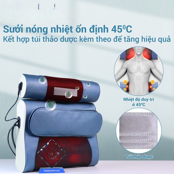 ✤ Dễ dàng tháo rời các bộ phận để Massage riêng lẻ: Bạn vừa Massage, kép giãn cột sống cổ. Vừa chườm thảo dược vùng eo, vùng bụng, giảm chèn ép cột sống thắt lưng rất đơn giản, tiện lợi. Khi không dùng đến cũng có thể tháo ra và cất gọn, tiết kiệm diện tích.