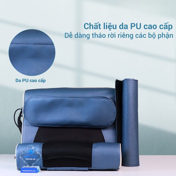✤ Chất liệu da PU an toàn, dây đồng dày dặn, ô trục êm ái: Duy trì độ bền, chống mài mòn gối. Không bị sờn hay rách như những loại gối Massage thông thường khác