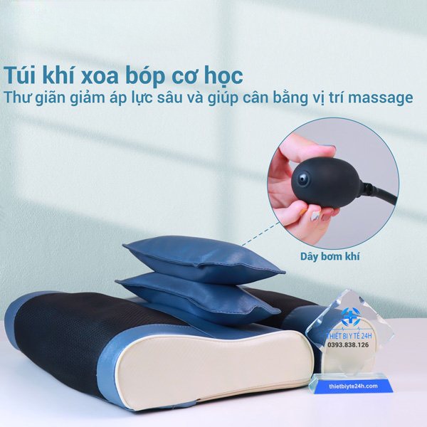 ✤ Túi khi Massage cơ học giúp cân bằng tư thế: Đối với các sản phẩm gối Massage khác khi nằm có thể khiến cổ, vai gáy bị đau, không thoải mái. Khắc phục nhược điểm đó, gối mát xa tích hợp thêm túi khí giúp cân bằng tư thế, giúp quá trình mát xa đạt hiệu quả tối ưu, đem lại cảm giác thoải mái cho người sử dụng