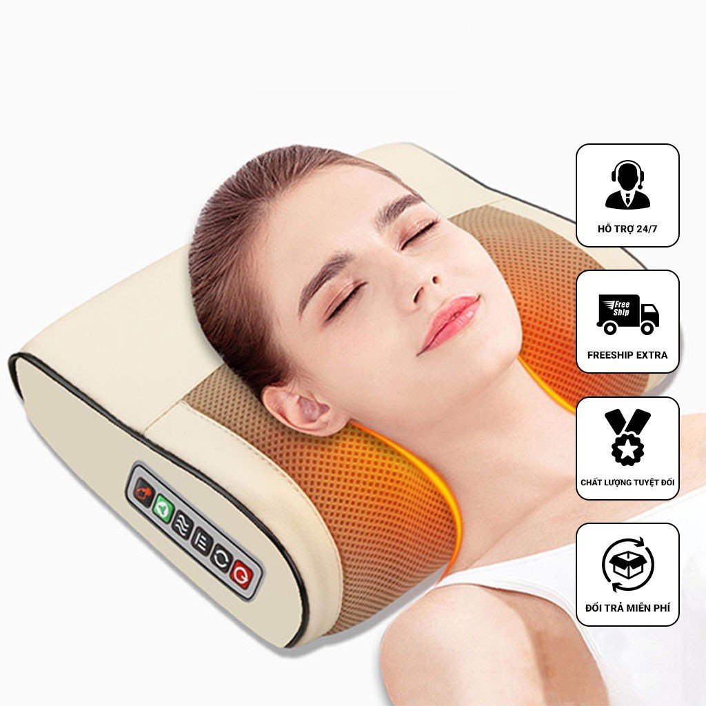 Gối Massage cổ vai gáy, máy Massage hồng ngoại 20 bi cao cấp