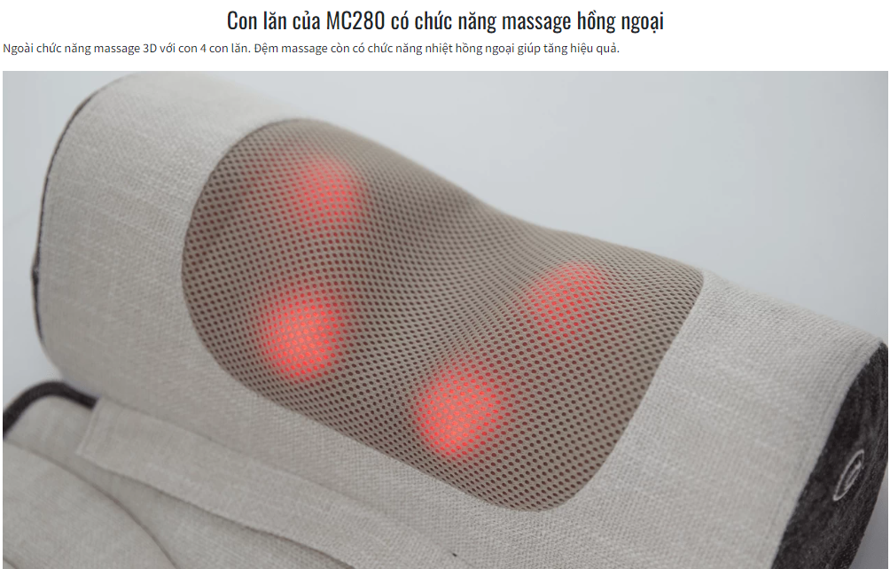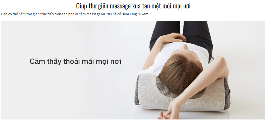 Thiết kế của gối massae đa năng MC280 độc đáo giúp bạn có thể sử dụng trực tiếp khi nằm trên sàn nhà hay trên ghế mà vẫn giữ đúng vị trí Massage