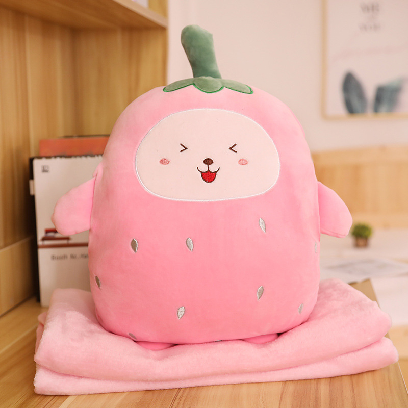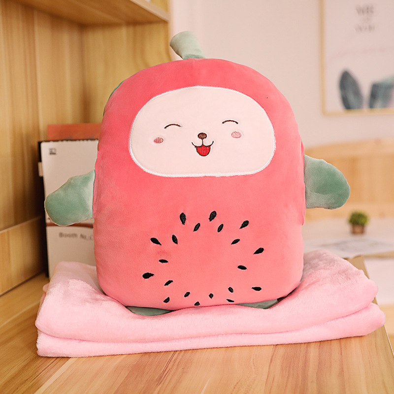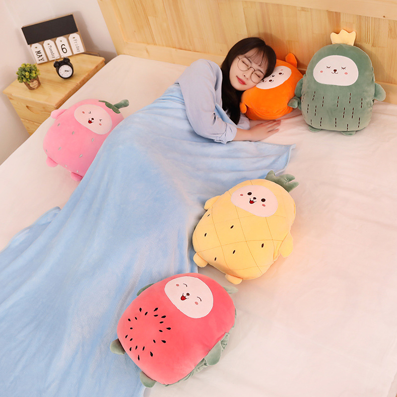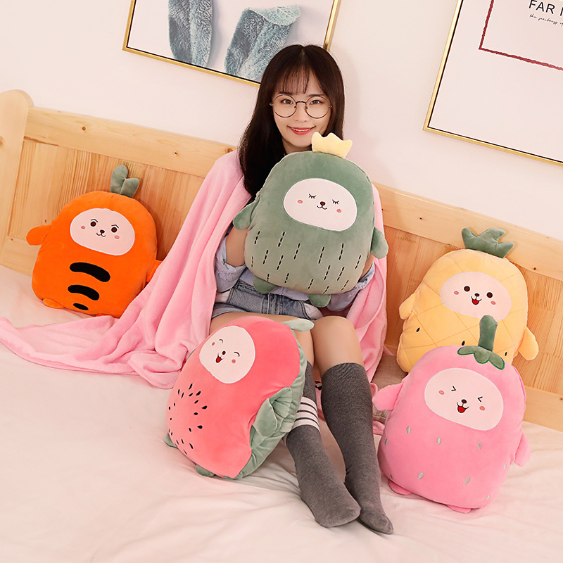 Gối mền 3 trong 1 bộ hình trái cây tựa lưng mền siêu to có thiết kế ngộ nghĩnh khá dễ thương. Ngoài là gối ôm, gối nằm thì còn có chức năng làm điệu đối với nhiều bạn gái hoặc trẻ em.