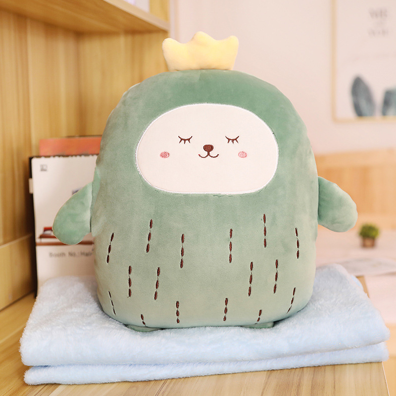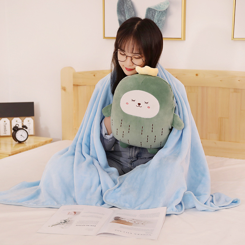 Kích thước: thú bông (40cm); Mền (180 cm x 120 cm)