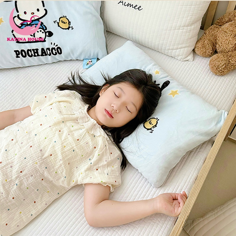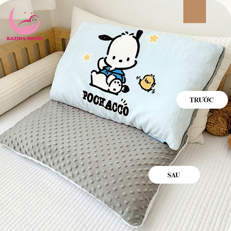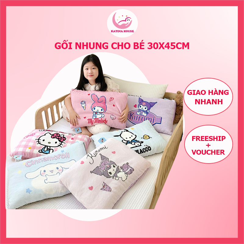 - Mặt chính: vải nhung in họa tiết kuromi, cinnamoroll, kitty, melody,...rất hấp dẫn các bé