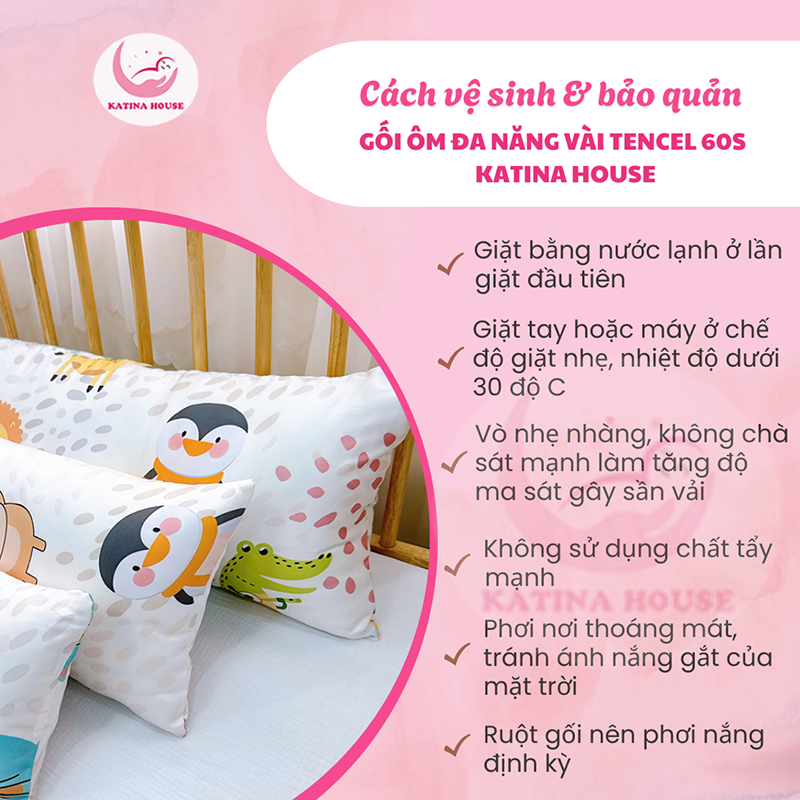 - Vỏ gối: Vải Tencel 60s cao cấp