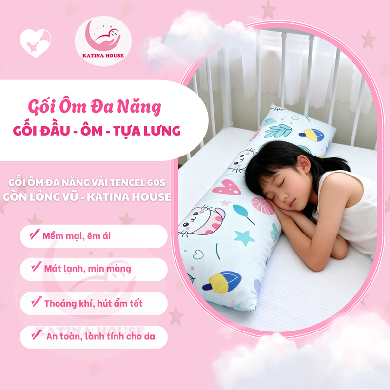 - Gối ôm tạo cảm giác an toàn, dễ ngủ