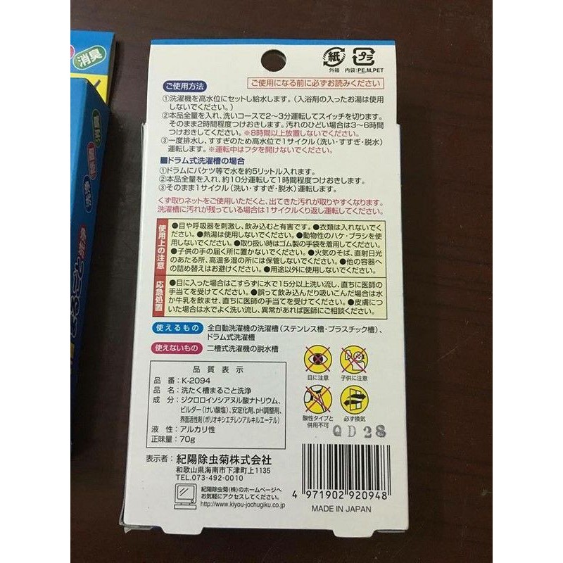 Gói tẩy vệ sinh lồng máy giặt 70g Trọng lượng: 70g Hàng nhập khẩu: Nhật Bản Công dụng: làm sạch vết bẩn bám trên lồng máy giặt Bảo quản: tránh ánh nắng trực tiếp
