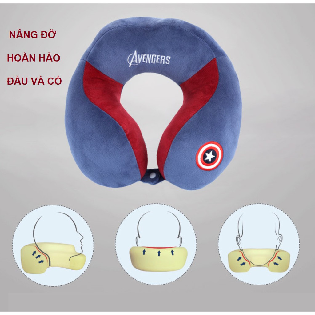 ❆ Gối tựa đầu Chữ U đa năng có thiết kế siêu cute, chất vải nỉ nhung cực kỳ êm ái mềm mại, thông thoáng, bên trong ruột là chất liệu bông êm ái, nâng đỡ nhẹ nhàng, mẫu dễ thương với thiết kế các nhân vật Avenger siêu cá tính. ❆ Sử dụng trong những chuyến đi dài để có giấc ngủ thoải mái, sản phẩm giải quyết được cảm giác khó chịu của việc dằn sốc và sự không thoải mái khi tựa lưng vào ghế ngồi cũng như các triệu chứng mỏi cổ, mệt mỏi ❆ Chất liệu vải nỉ nhung siêu mịn, mềm mại, thoáng khí ❆ Thiết kế chữ U siêu thông minh ôm xung quanh cổ, cố định phần đầu và các đốt sống cổ. ❆ Gọn nhẹ, dễ dàng mang theo. ❆ Kích thước: 33 x 29 x 11 cm. ❆ Dùng khi đi du lịch xa, ngồi máy bay, tàu hỏa, ô tô … và ngủ trưa văn phòng.