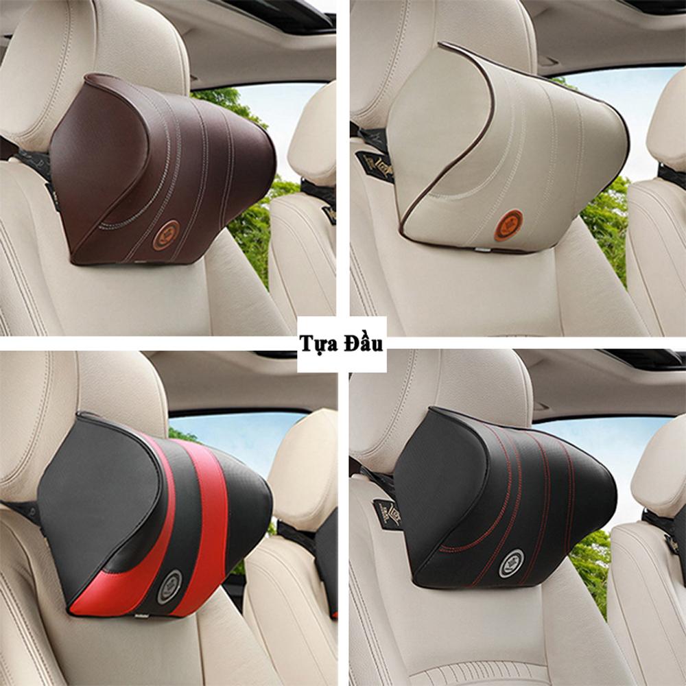 Gối tựa đầu ô tô chất cao su non đúc nguyên khối bọc da cao cấp cho xe hơi ghế văn phòng siêu đàn hồi