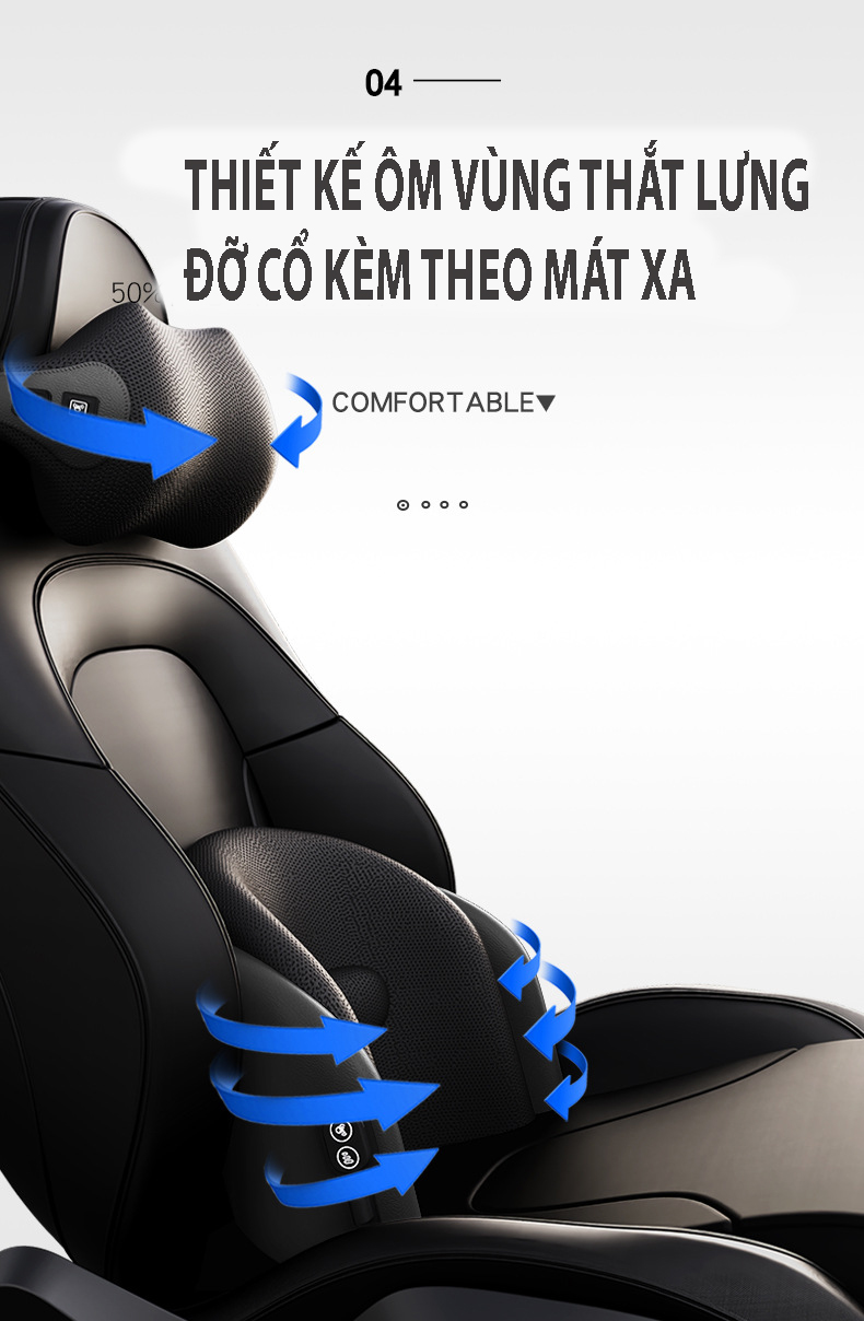 Chức năng: Massage cổ, sau gáy, vai và lưng. Tạo cảm giác dễ chịu khi ngồi trên xe