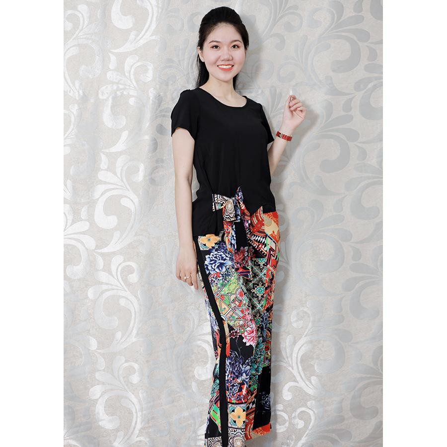 • Thiết kế áo dáng hơi rộng cột nơ họa tiết một bên, tay ngắn, quần ống rộng in họa tiết hoa, có túi 2 bên, chất liệu không co giãn nhưng vẫn tạo được cảm giác thoải mái. • Set quần dài qua gối rất dễ mặc và tôn dáng • Chất liệu vải vừa phải không mỏng cũng không dày nên phù hợp với thời tiết của việt nam • Áo được thiết kế không dây kéo, quần dây kéo bên hông, lưng thun sau • Bộ được may sắc xảo, sắc nén rất đẹp • Độc quyền thương hiệu GOTI - FORM DÁNG ĐẸP - ĐƯỜNG MAY SẮC NÉT- HÌNH THẬT SẢN PHẨM • Chất liệu: ÁO TƠ NHUNG + QUẦN SILK LỤA • Màu sắc: Đen • Mục đích: Công sở, Đi chơi, Dạo phố, Dự tiệc. • Sản phẩm gồm 1 đầm có size M 48-53kg, L 53 – 58kg, XL 58-63kg, XXL 63-68kg