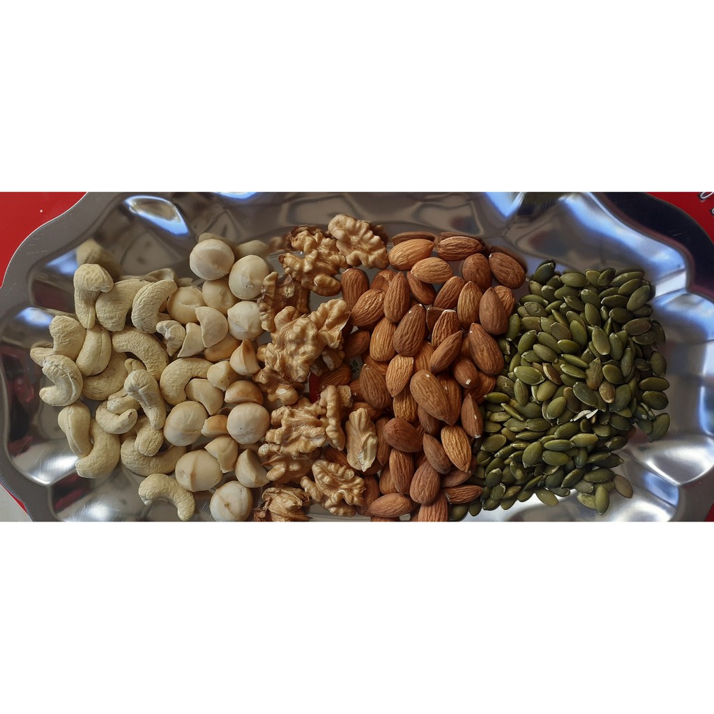 ✅ Óc chó đỏ, Óc chó vàng, Hạnh Nhân, Bí Xanh, Hạt Điều, Nho sấy, Yến mạch được tẩm thêm mật ong, nướng giòn, thơm...Dễ ăn hơn và cực kỳ giòn ạ.