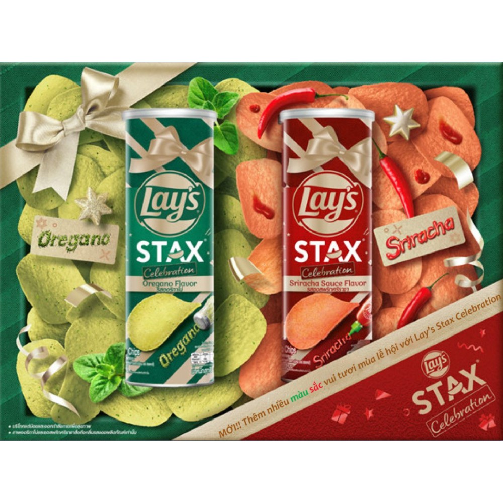 Với thiết kế dạng ống tiện dụng, dễ dàng bảo quản và thoải mái sẻ chia, Snack Khoai Tây Ống Lay's Stax là món ăn không thể thiếu trong những chuyến đi chơi, du lịch, dã ngoại, hội họp bạn bè và tận hưởng tại nhà. Đặc biệt, với thiết kế bao bì ấn tượng và sang trọng, lấy chủ đề mùa Lễ Hội với màu Đỏ và màu Xanh là màu chủ đạo, đây thực sự là một lựa chọn hết sức phù hợp để làm quà tặng trong giỏ quà Tết. Sản phẩm là sự lựa chọn tuyệt vời với thiết kế sống động và hiện đại, cùng bạn biến mọi khoảnh khắc thêm vui thêm yêu đời 😋.