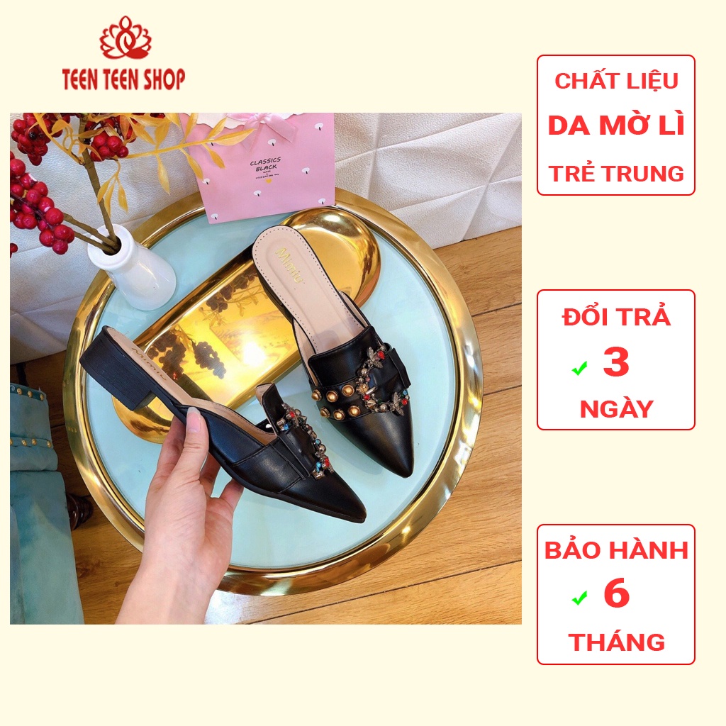 Giày Dép Nữ > Giày đế bằng > Giày sục & Giày búp bê || Guốc sục nữ cao 3p, mũi nhọn đính khóa ong nổi bật, sang trọng,Giày búp bê nữ bằng da mẫu mới nhất, Teen Teen Shop.