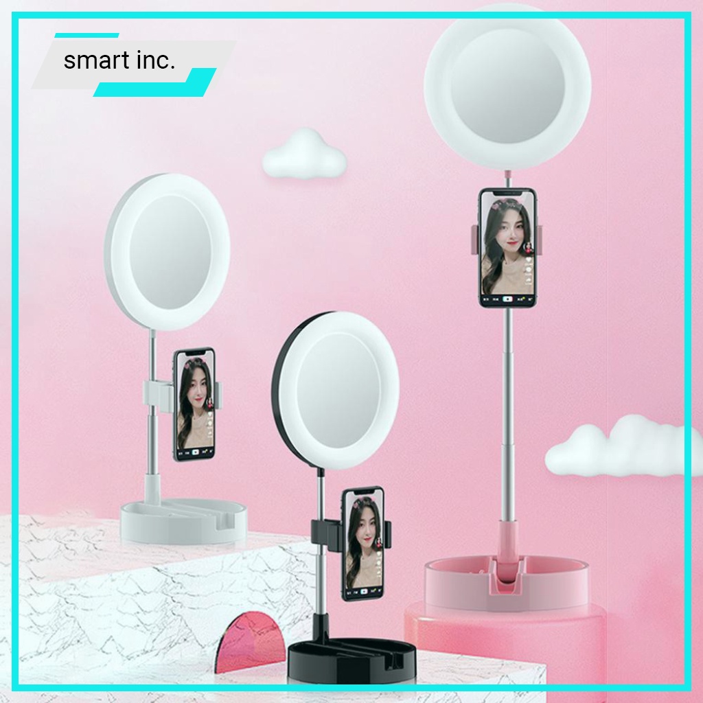 Giới thiệu Gương Để Bàn Trang Điểm Gấp Gọn Có Đèn Led Livestream Xoay 360 Độ