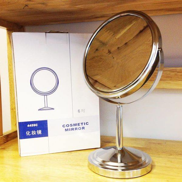 Gương Trang Điểm 2 mặt loại lớn, chất liệu viền Inox bọc bên ngoài chắc chắn, gương 1 mặt độ zoom lớn giúp bạn trang điểm dễ dàng.