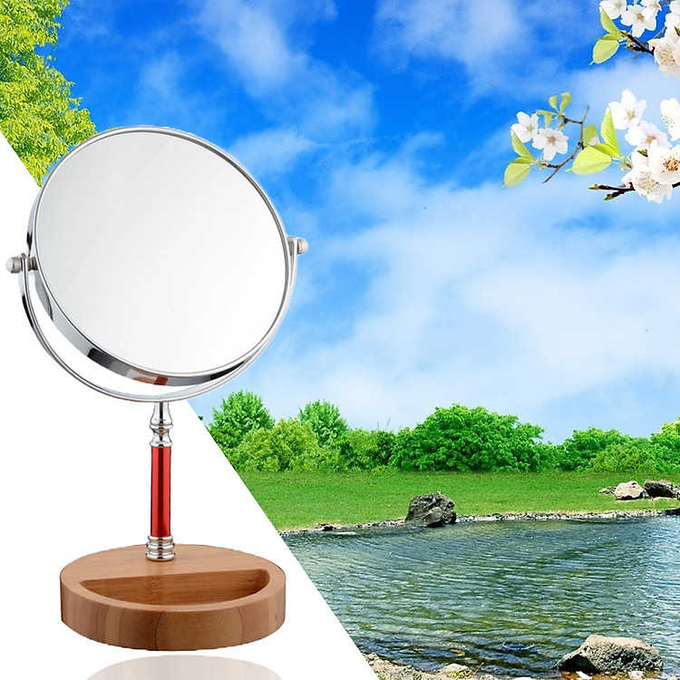 Gương trang điểm để bàn đế gỗ Red Roman, Crom, phóng đại zoom x3, 2 mặt xoay siêu nét Minh House