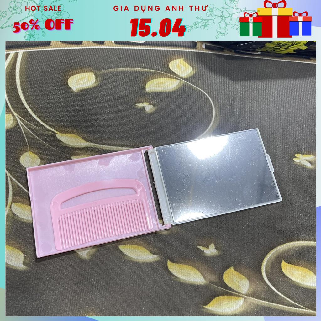 Gương trang điểm gấp gọn kèm lược nhiều màu (giao màu ngẫu nhiên)