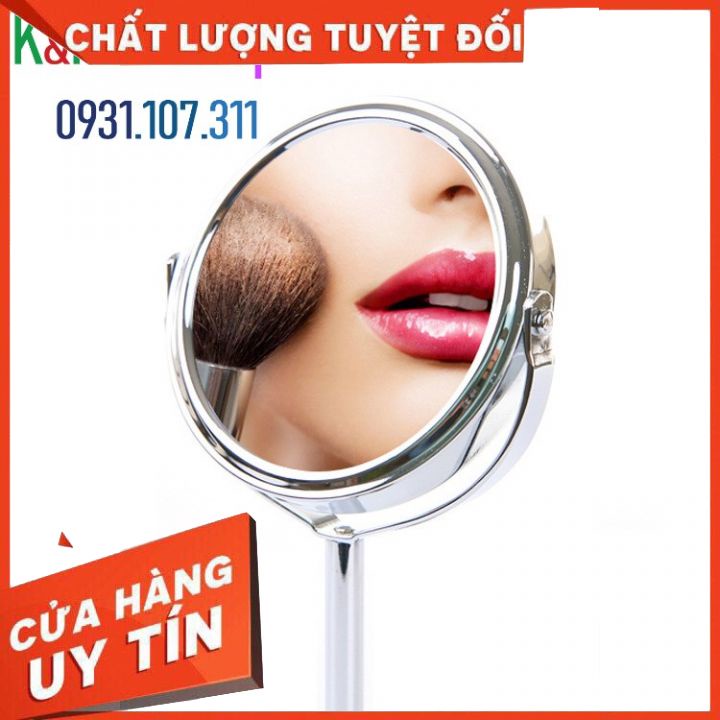 Gương trang điểm. Gương mini 2 mặt phẳng để bàn, một mặt có thể phóng to gấp 3 lần ảnh rõ nét.