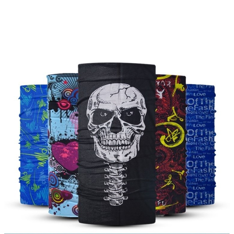 Khăn bịt mặt đầu lâu đa chức năng V.3 - Một phong cách thời trang đã trở thành xu hướng và đang chiếm lĩnh "style" của nhiều nghệ sĩ Nhật - Hàn thời gian gần đây. Không phải không có lý do mà thời trang này nhanh chóng gây ảnh hưởng đến các bạn trẻ bởi tính đa năng, tiện dụng của nó. - Khăn bịt mặt đầu lâu đa chức năng V.3 là loại không có đường nối (Seamless), được dệt thành hình ống bằng chất liệu thun lạnh co giãn rất tốt; là phụ kiện vừa tiện lợi vừa thời trang với dân đi Phượt. - Có thể sử dụng để: Mang vào cổ, che mặt, làm khẩu trang, trùm đầu, buộc tóc, làm băng đô, đeo cổ tay, bịt mắt, thậm chí làm áo ống, váy túm, che mắt để ngủ, cột tóc, làm nón các kiểu che nắng, che bụi, thấm mồ hôi chơi thể thao... và rất nhiều các ứng dụng khác tuỳ vào sự sáng tạo của mỗi người. - Chất liệu: Vải thun cao cấp, những đường chỉ may giấu tay thật khéo léo tạo cảm giác mát mẻ, thoải mái cho mọi người. - Thích hợp cho người lớn, trẻ em, cả nam lẫn nữ. - Khăn bịt mặt đầu lâu đa chức năng V.3: "chống bụi", "đẹp", "cá tính + bá đạo đường phố", "nghịch ngợm", "cực chất", "ngầu",...
