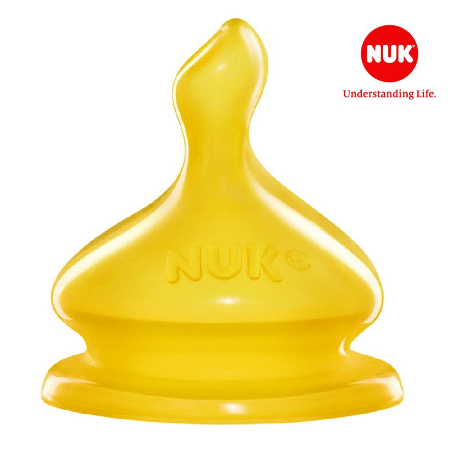 Chất liệu cao su tự nhiên an toàn, siêu mềm và khó rách. Núm ti dẹt chỉnh nha độc quyền của NUK cho bé đúng khớp ngậm, răng mọc đều đẹp. Thay thế được cho tất cả bình sữa cổ rộng Premium Choice+. Núm ti dẹt chỉnh nha: Thiết kế độc quyền của NUK, cho phép lưỡi trẻ có đủ không gian để di chuyển. Các động tác liên hoàn mút-nuốt-nhả-nghỉ tạo ra sự phối hợp nhịp nhàng giữa lưỡi, môi, vòm miệng, cơ hàm. Việc rèn luyện thường xuyên này hỗ trợ trẻ sớm phát triển kĩ năng nhai nuốt, giao tiếp; thúc đẩy răng mọc thẳng đẹp, không hô hay xô lệch. Lỗ tiết sữa nằm ở mặt trên của núm ti: Tạo cơ chế phun sữa dạng vòng cung lên vòm miệng giúp trẻ tránh giật mình dẫn đến nghẹn sặc, không như các lỗ tiết sữa ở bình thông thường nằm giữa núm ti phun thẳng vào cổ họng bé. Bên cạnh đó, cơ chế phun sữa đặc biệt này còn giúp sữa có đủ thời gian để hòa với enzyme nước bọt của bé giúp tiêu hóa sữa tốt hơn. Cổ núm nhỏ: cho phép môi được khép kín, miệng không cần mở rộng để giữ núm ti, không tác động xấu đến cấu trúc của hàm. Đầu ti siêu mềm, bầu núm tối ưu: Đặc biệt linh hoạt tương tự như ti mẹ và vừa vặn với miệng bé, giúp bé dễ chấp nhận và giữ chắc núm ti trong miệng. Hệ thống van thông khí NUK: Cho phép sữa chảy đều mà bé không nuốt phải khí thừa, hạn chế tối đa hiện tượng chướng bụng, đầy hơi, nôn trớ Lưu Ý Sử Dụng Núm Ti Bình Cổ Rộng NUK Premium Choice+ Quay phần van thông khí và lỗ tiết sữa lên trên khi cho bé bú. Luộc sôi 3-5 phút trước lần sử dụng đầu tiên. Lưu ý những lần vệ sinh sau, tiệt trùng bằng cách nhúng qua nước sôi hoặc sử dụng máy tiệt trùng, không luộc/ngâm trong nước nóng. Không dùng trong máy rửa bát/lò vi sóng. Nên vệ sinh bằng nước rửa bình NUK (công thức enzyme tự nhiên loại bỏ protein trong sữa, cặn bột hay dư lượng nước trái cây). Bảo quản nơi khô ráo, không để dưới ánh nắng trực tiếp hoặc nơi gần nguồn nhiệt. Không nhúng núm ti vào các chất ngọt hoặc thuốc. Vì mục đích an toàn, núm ti cao su nên thay mới sau 3-4 tuần sử dụng hoặc bất cứ khi nào có dấu hiệu xuống cấp như bóp thấy dính, hoặc xuất hiện vết nứt, rách. Mẹo nhỏ: Sử dụng sữa tươi trong lần luộc đầu tiên nhằm làm dịu bớt mùi của cao su tự nhiên. Thương hiệu NUK Nơi sản xuất Đức Chất liệu Cao su tự nhiên an toàn không chứa BPA Số lượng 2 chiếc Màu sắc Vàng