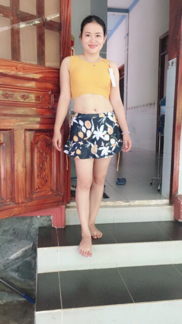 Size Chiều cao (cm) Cân nặng (kg) Size áo ngưc M 150 - 160 42 - 49 70A, 70B, 75AB Mông dưới 89 L 155 - 165 49 - 55 75B, 80AB Mông dưới 95 XL 160 - 170 56 - 62 80A, 80B, 85AB Mông dưới 100 GỒm 3 đồ: 1 quần đùi, 1 váy, 1 áo croptop