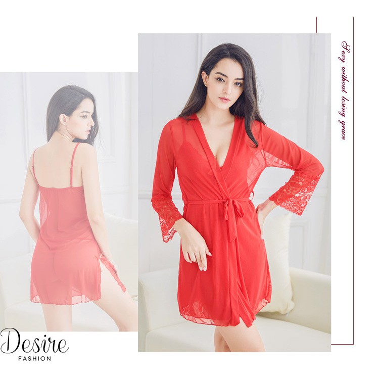 Giới thiệu [Hàng cao cấp] Set váy ngủ, áo choàng, thắt lưng ren sexy chất loại 1 VNN-002