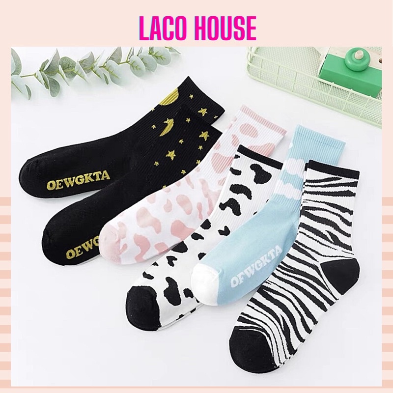 Giới thiệu (Hàng cao cấp) Tất/Vớ cao cổ nữ hoạ tiết bò sữa, ngựa vằn lacohouse TAT01