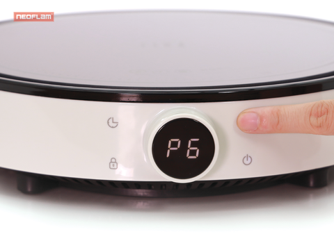 để chọn công suất, vặn nút điều chỉnh sang trái hoặc phải để chọn công suất từ P1 đến P9 (Tương đương từ 200w tới 2000w). Chạm lần nữa vào nút chức năng để chọn nhiệt độ và vặn nút điều chỉnh để chọn nhiệt độ từ C1 đến C9 (tương đương từ 60°C tới 220°C).