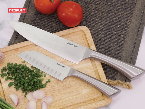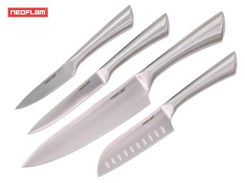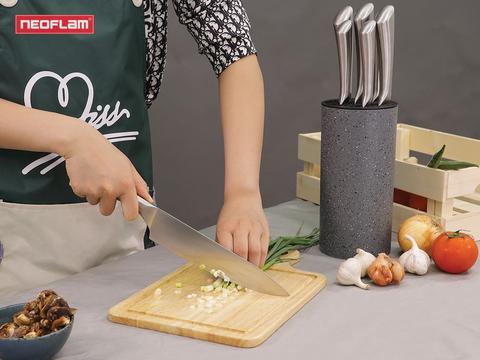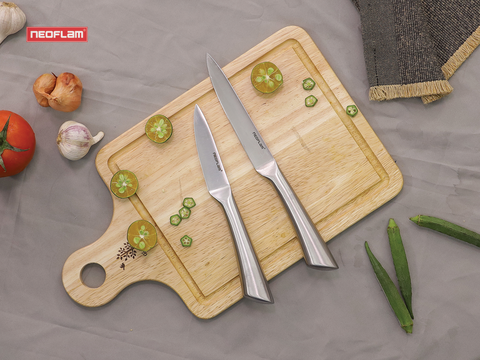 Bộ dao Neoflam gồm 4 dao: Dao chef, dao santoku nhỏ, dao tỉa, dao gọt và giá cắm dao. Bộ dao đầy đủ cho một căn bếp để chế biến mọi loại thực phẩm.