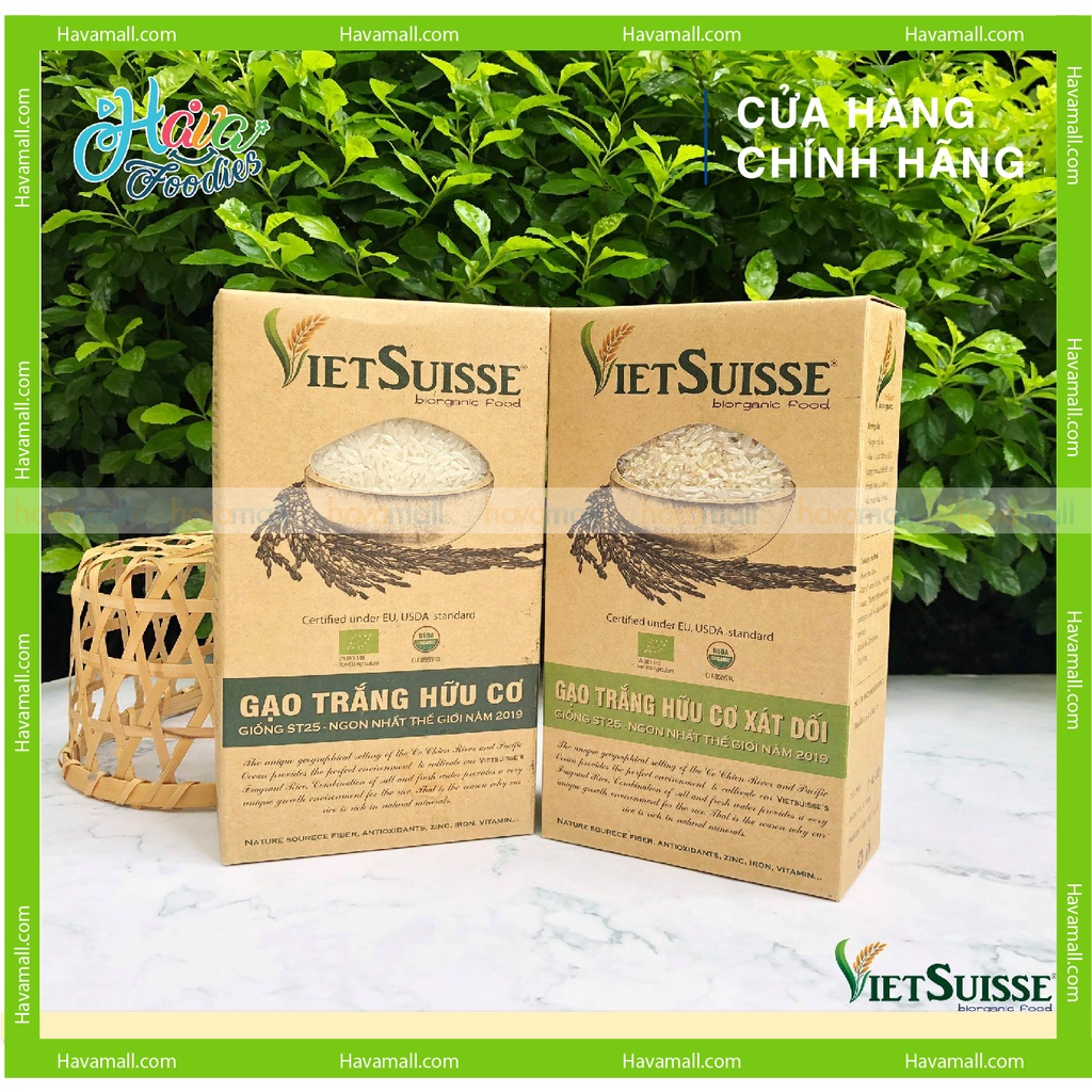 Gạo hữu cơ VietSuisse hiện có các dòng: Gạo Trắng hữu cơ và gạo lứt hữu cơ được sản xuất từ giống lúa đặc sản ST25, giống lúa cho ra đời loại gạo được vinh danh “TOP 1 GẠO NGON NHẤT THẾ GIỚI” vào năm 2019.