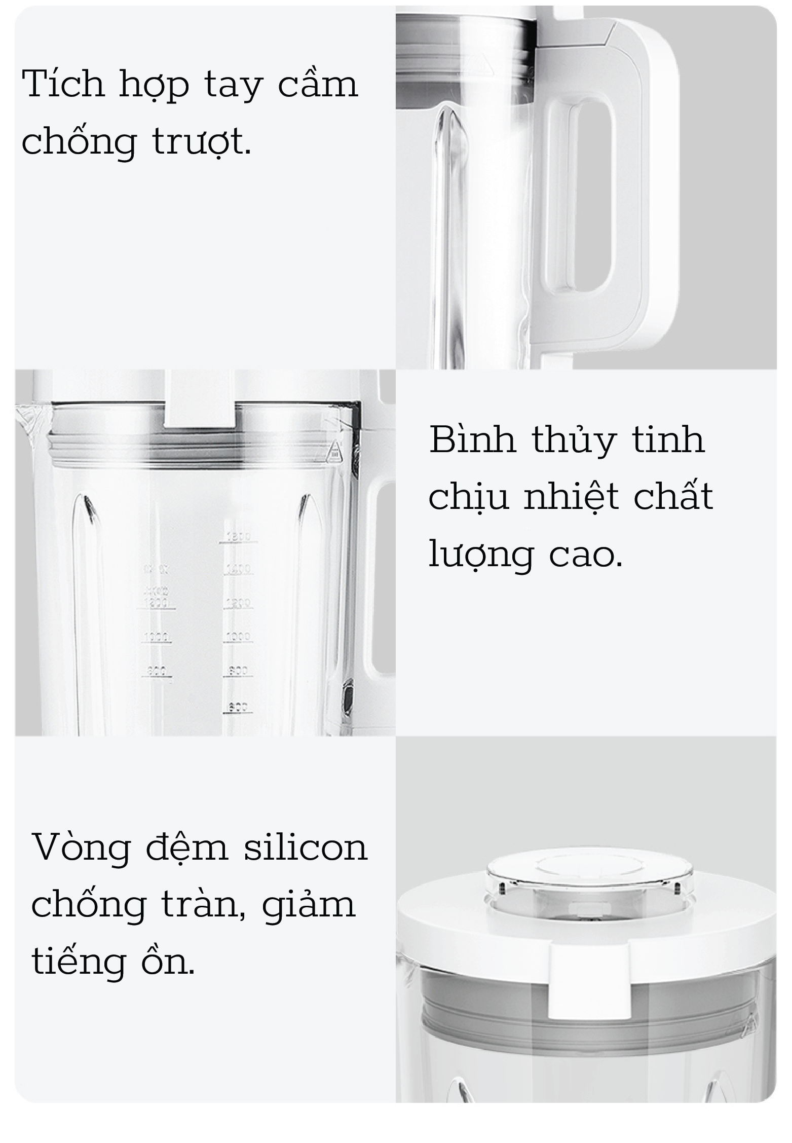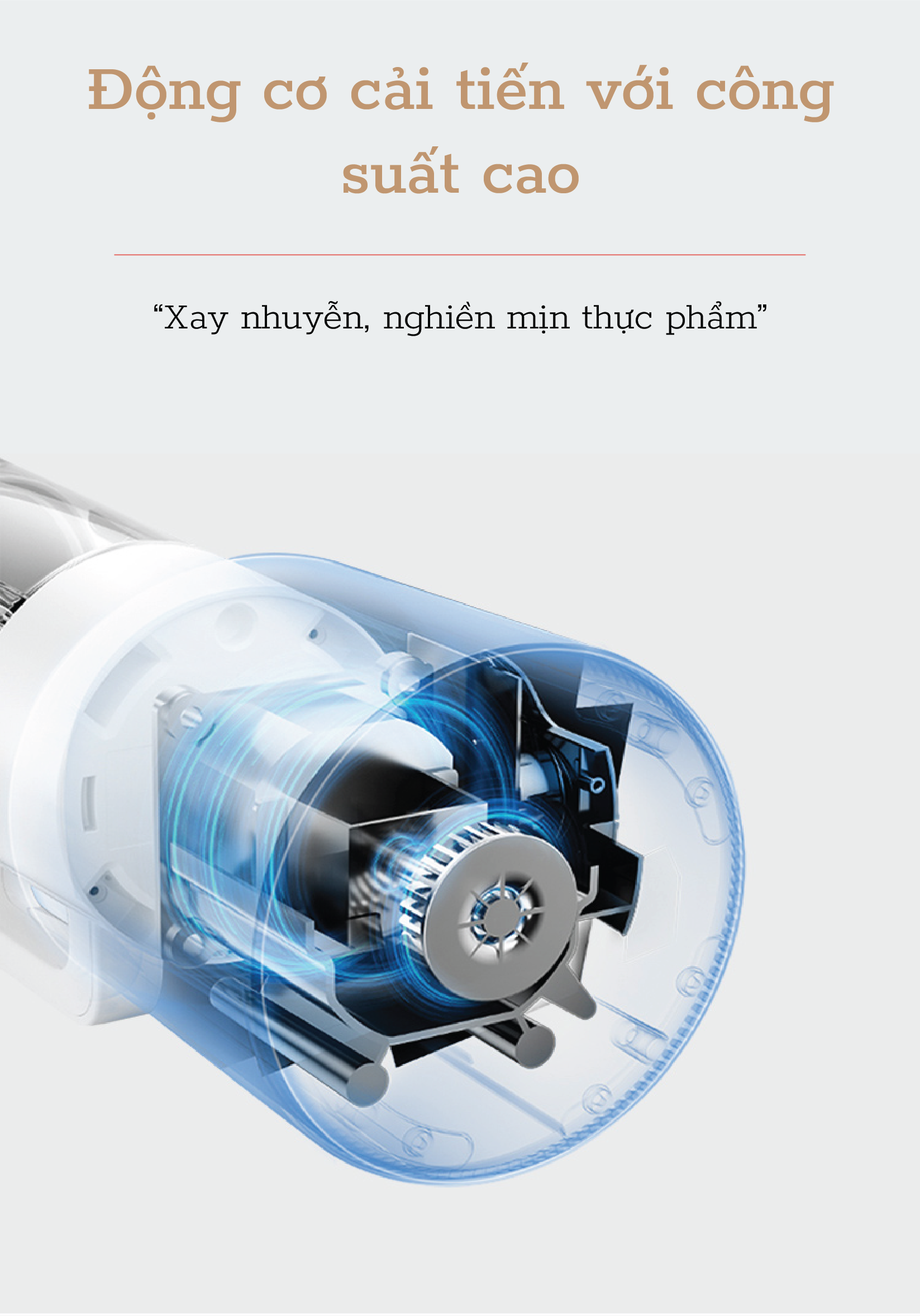 Thiết kế động cơ thông minh cùng công suất ấn tượng sẽ khiến các nguyên liệu được xay nhuyễn và mịn một cách nhanh chóng. Bên cạnh đó, các điểm mút của máy được gia cố giúp máy hoạt động chắc chắn, không rung lắc trong quá trình động cơ hoạt động, giúp giảm tiếng ồn và đảm bảo an toàn khi sử dụng.