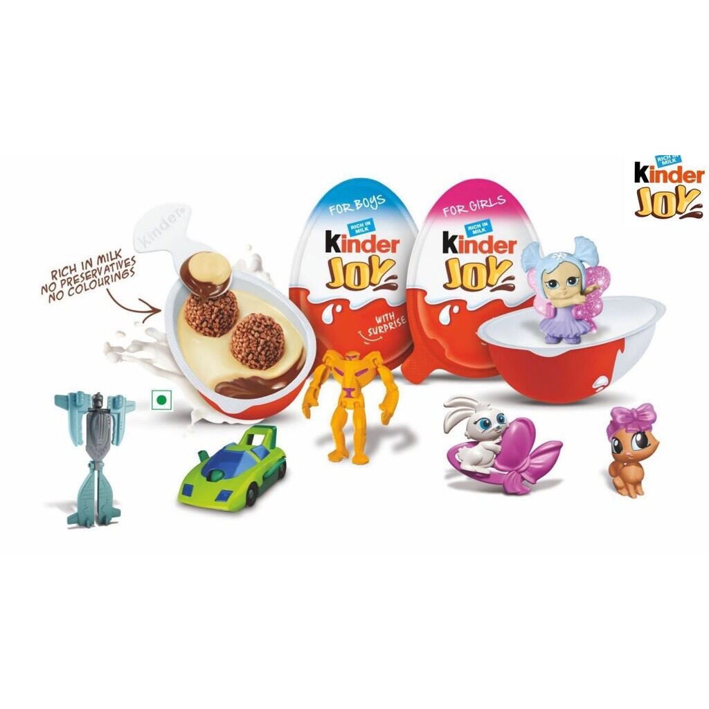 🔮 Kinder Joy. Made in India ( Ferrero Group ) Là dạng tròn như quả trứng- khi tách Đôi 1 bên đựng là sôcôla sữa ăn rất ngon , 1 bên là đựng đồ chơi với mấy mươi điều ngạc nhiên khác nhau