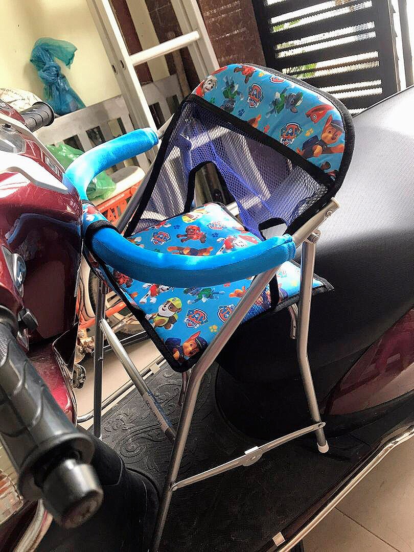 - Ghế xe được thiết kế gọn gàng, kích thước vừa vặn với chiếc xe, có dây đai giữa em bé và ghế, giúp đảm bảo an toàn cho bé khi đi trên đường.