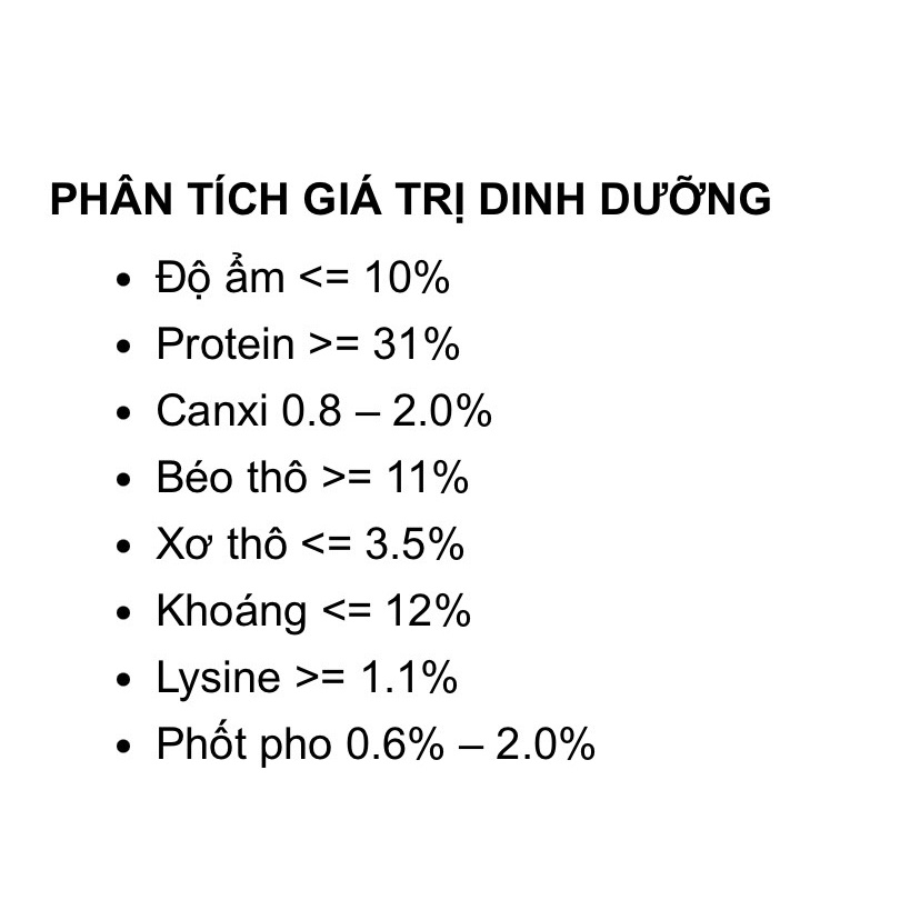 HƯỚNG DẪN BẢO QUẢN - Bảo quản nơi khô ráo, tránh ánh nắng trực tiếp từ mặt trời. - Dùng trong thời gian nhanh nhất sau khi mở bao bì. - Sau khi cho ăn, đậy nắp bao bì để tránh các dị vật và côn trùng gây hại. - Ngưng sử dụng sản phẩm đã bị biến chất trong khi bảo quản. (Chú ý bảo quản khi thời tiết nóng ẩm và vào mùa hè) - Bảo quản xa tầm tay trẻ em. - Không dùng làm thức ăn cho gia súc. --------------------------------------------------------------------------------------